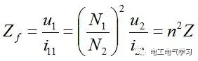 反射阻抗,當(dāng)輸出帶負(fù)載時(shí),負(fù)載通過(guò)變壓器取能量,輸入電流會(huì)相應(yīng)增加,因此變壓器的等效輸入阻抗是如下式子: